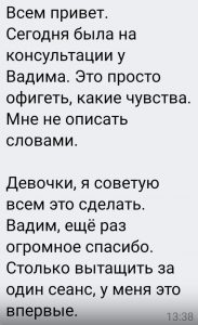 И в завершение, реальный отзыв, как раз, про работу курсом, который длился три месяца, в конце статьи «Внутренняя жертва или как перейти в адекватную самооценку?»