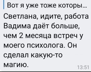 «Большое спасибо за консультацию. В результате я сумел разобраться в непростой для себя ситуации. И понял как из нее выйти. Кроме того нашел массу ответов на вопросы которые долго не мог решить.Еще раз СПАСИБО».
